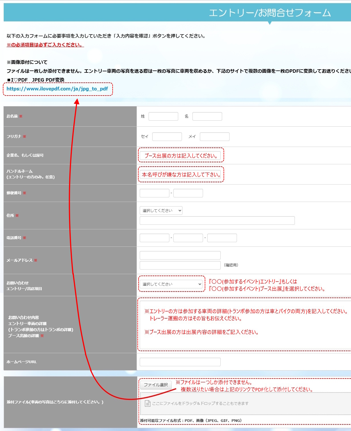 | お申込み | 2026/1/1よりエントリー開始します。 エントリーフォームより必要事項を記入の上申し込み下さい。 (要車両の組み合わせ詳細) ※画像を送れる方は送ってください。(任意) |